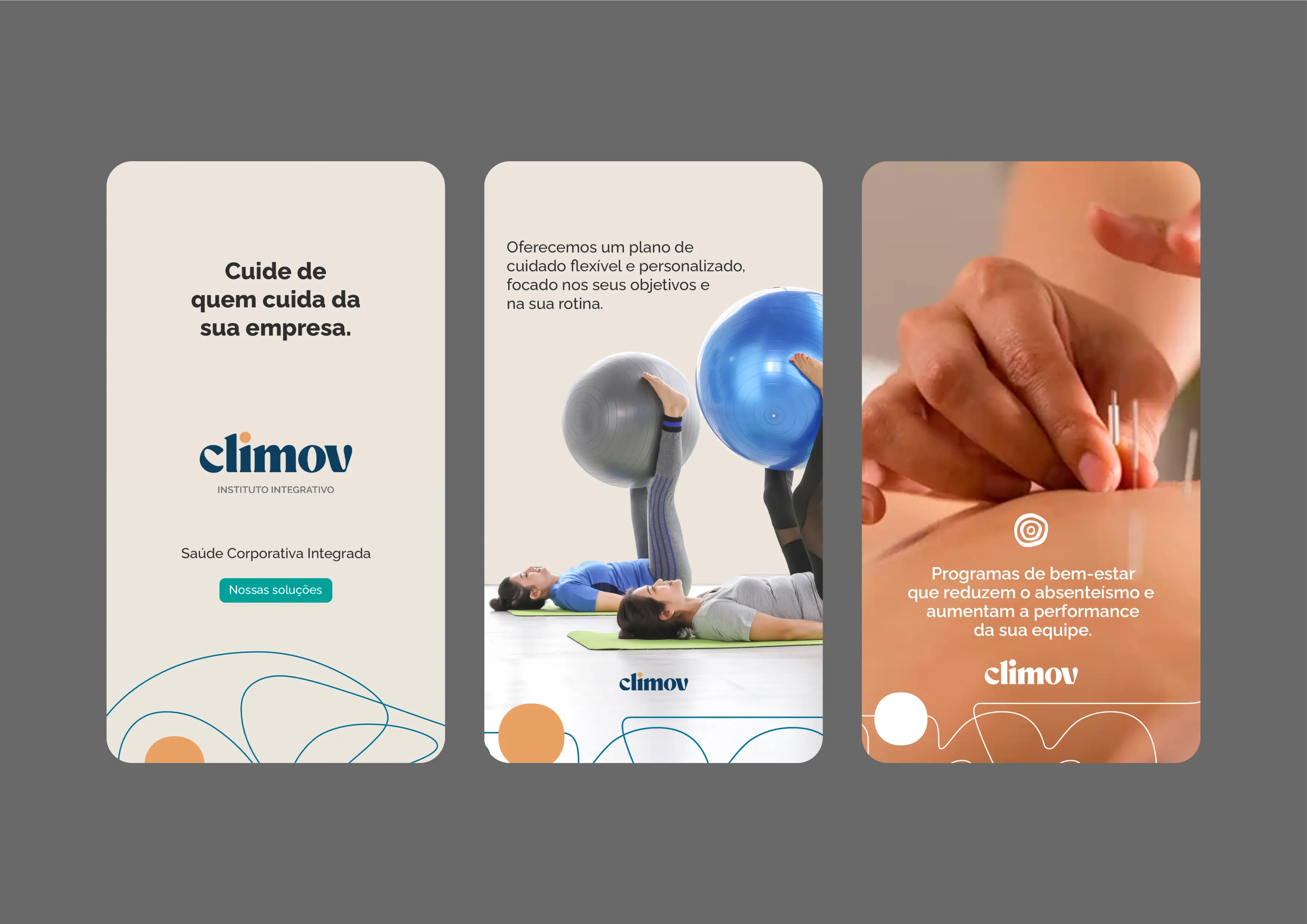 A climov nasceu da necessidade de expansão para um ecossistema de cuidado completo. O principal desafio foi projetar uma identidade que unificasse seus diversos segmentos de atuação — Clínica, Home Care e Corporativo — sob uma filosofia de cuidado integrado, comunicando tanto expertise técnica quanto um acolhimento humano.