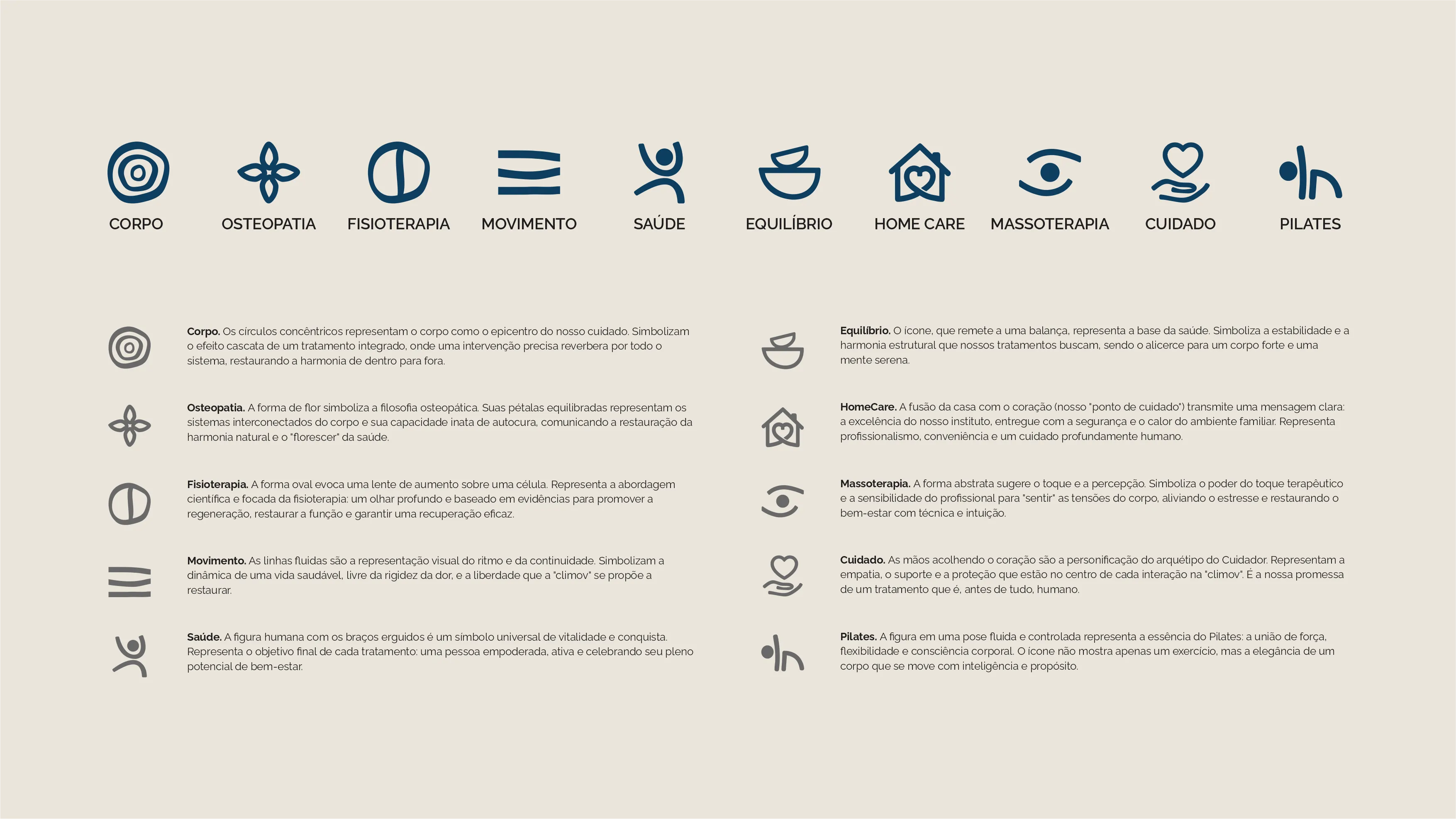 A climov nasceu da necessidade de expansão para um ecossistema de cuidado completo. O principal desafio foi projetar uma identidade que unificasse seus diversos segmentos de atuação — Clínica, Home Care e Corporativo — sob uma filosofia de cuidado integrado, comunicando tanto expertise técnica quanto um acolhimento humano.